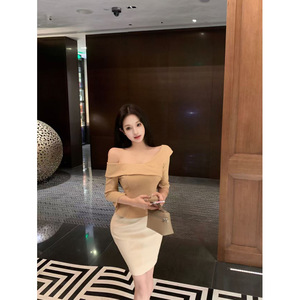 昕可达「温柔学姐」时尚休闲修身收腰复古小众设计上衣半裙套装