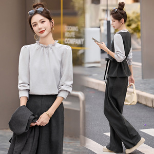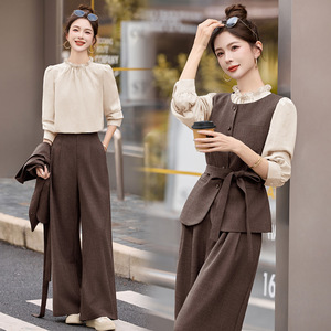 洋气套装女2025秋季新款洋气减龄马甲针织衫阔腿裤三件套 ME5718