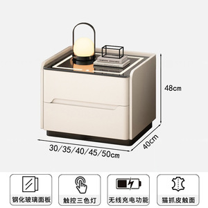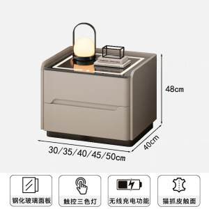米白色+无线充电+三色灯【3C钢化玻璃+实木+猫抓皮】