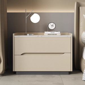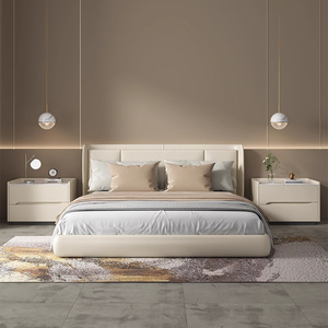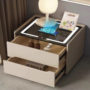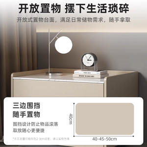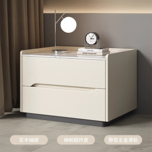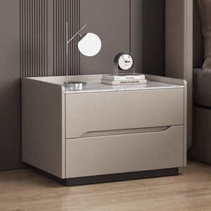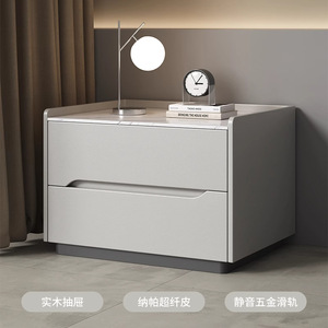 全实木床头轻奢岩板储物卧室简约床边皮质小户型纳