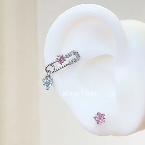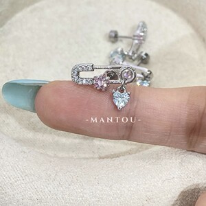 小众设计粉色蓝色爱心锆石别针耳钉耳环耳饰女简约甜美耳骨钉