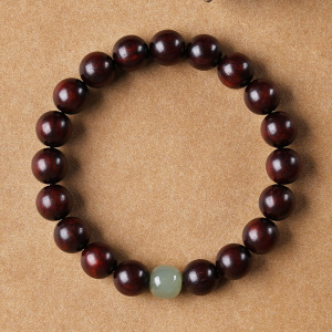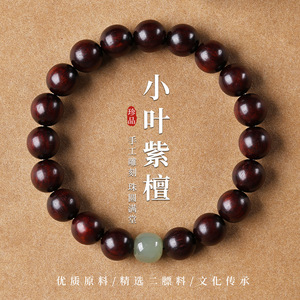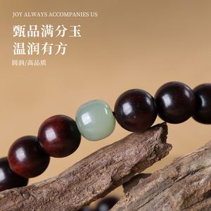 高密小叶紫檀手串单圈圆珠和田玉桶珠设计紫檀木檀香佛珠文玩手链