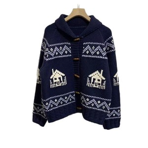韩版秋冬新款羊驼绒针织提花毛衣女外套文艺复古风牛角扣翻领开衫