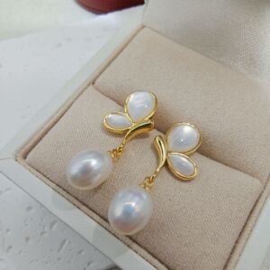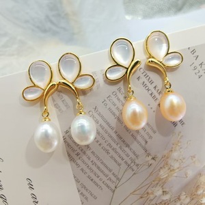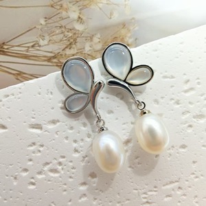 天然贝母蝴蝶耳环S925银针淡水真珍珠耳钉小众设计轻奢高级感耳坠