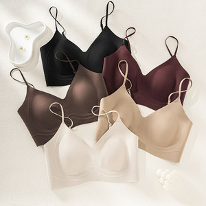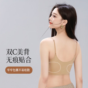 磨毛细肩带粉底液内衣女直播代发大胸显小兔耳杯隐形文胸外贸跨境