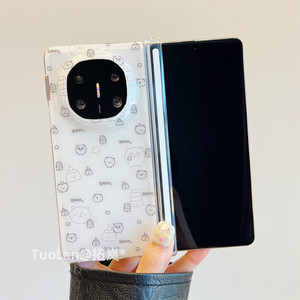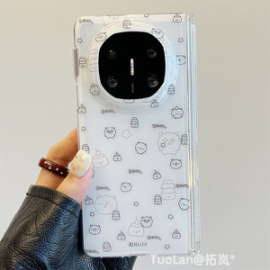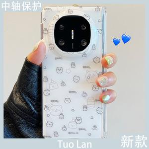 适用华为matex6折叠屏手机壳新款双层简约满屏线条卡通可爱小熊乳酸菌matex5/x3典藏版中轴保护挂绳男女