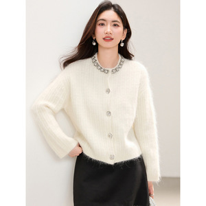 2025秋冬新款法式小香风重工镶钻高级感羊驼毛针织开衫女毛衣外套