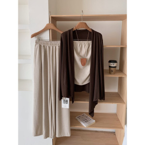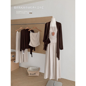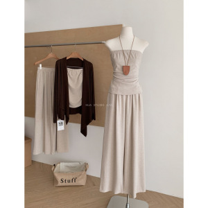 塞纳一整套早秋穿搭三件套女时尚慵懒氛围感开衫+背心抹胸+阔腿裤