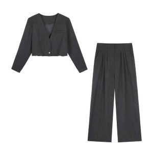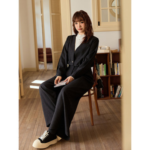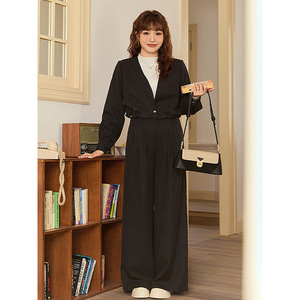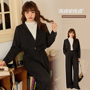韩系气质通勤高级感西装外套胖mm大码修身显瘦阔腿裤子套装63702