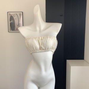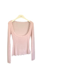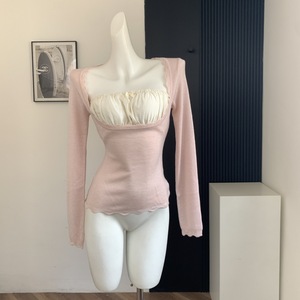 白水女 温柔氛围感 褶皱纱打底花边圆领毛针织衫女秋季抹胸内搭