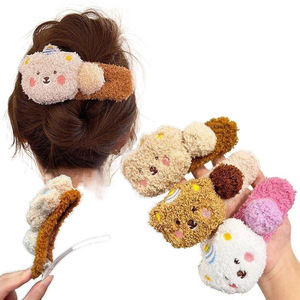 可爱毛绒小熊鸭嘴夹女大号秋冬发夹后脑勺发卡毛毛夹子高级感头饰