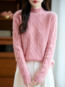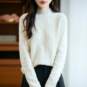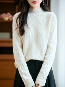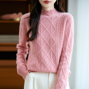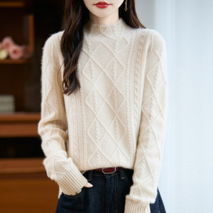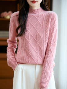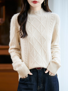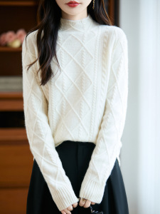 新款七针重磅加厚半高领100羊毛衫女秋冬保暖内搭纯色打底衫毛衣