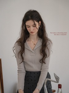 Dailyart“朵莉亚的梦”12针坑条 V领翻领亲肤长袖羊毛针织打底衫