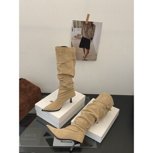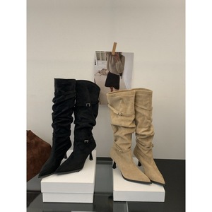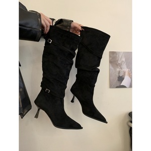 2025新款秋冬法式长筒靴女细高跟鞋冬季配大衣高筒长靴美拉德靴子