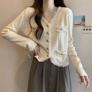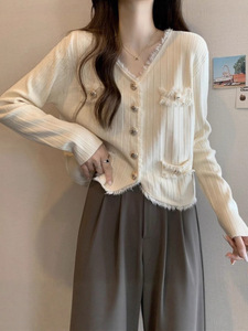 法式别致v领小香风针织开衫女2025秋冬大码胖mm独特毛衣外套上衣