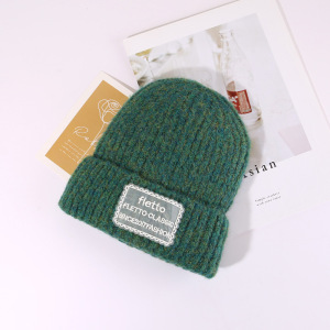 C5621蕾丝边透明fletto标毛线帽YC 混绿色