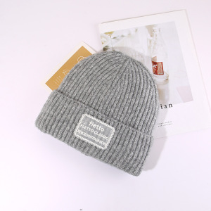 C5621蕾丝边透明fletto标毛线帽YC 浅灰