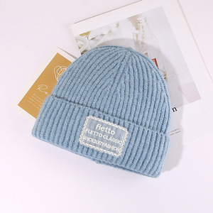 C5621蕾丝边透明fletto标毛线帽YC 蓝色