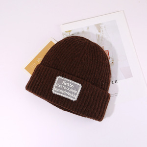 C5621蕾丝边透明fletto标毛线帽YC 咖啡