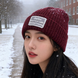 帽子女秋冬针织帽保暖护耳显脸小冷帽日系冬季帽子防寒套头毛线帽