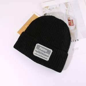C5621蕾丝边透明fletto标毛线帽YC 黑色