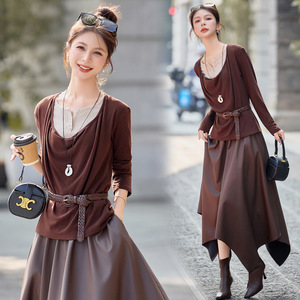 时尚套装2025秋季新款拼接上衣设计感不规则半身裙两件套裙YF2625