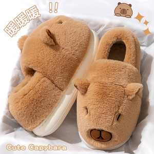 加厚包跟棉拖鞋女款2025新款秋冬季可爱卡皮巴拉防滑保暖情侣棉鞋