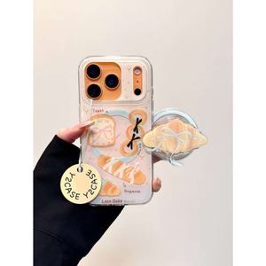 磁吸壳·ins简约吐司牛角包支架IMD手机壳适用iPhone16151413女壳