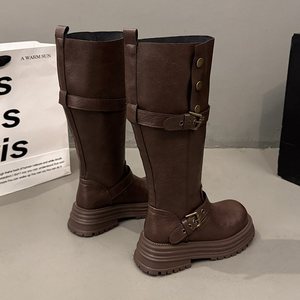 2025新款英伦风厚底黑色显瘦长靴高筒粗跟长筒靴女复古秋冬骑士靴