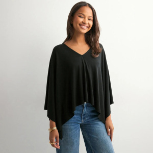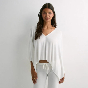 Q25TP292欧美跨境秋季女装百搭舒适休闲新款纯色V领宽松披肩上衣