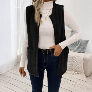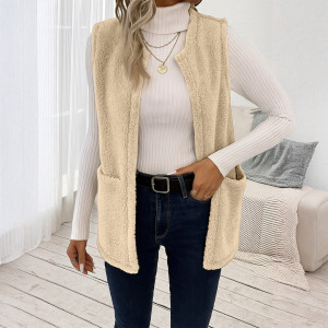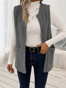 现货亚马逊跨境2025秋冬新款小香风休闲毛绒保暖防寒百搭外穿马甲