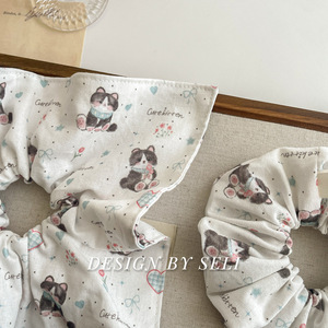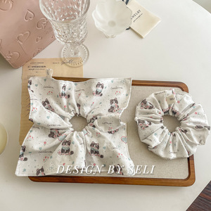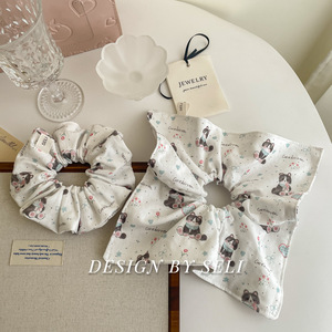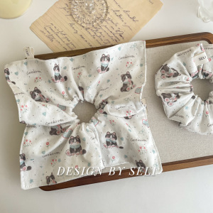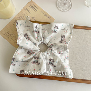 爱心碎花小狗~可爱围巾狗狗大肠发圈少女奶油肠圈发饰小众头绳
