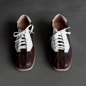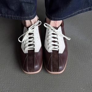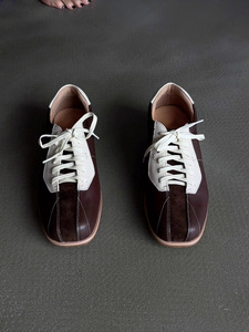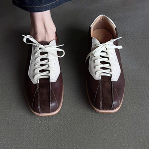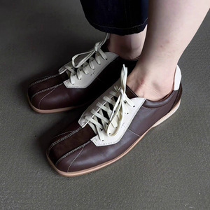 羊皮版~2025年新款老钱风法式时尚单鞋女方头系带运动休闲德训鞋
