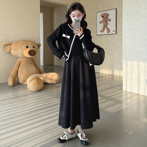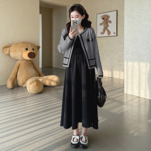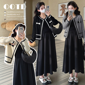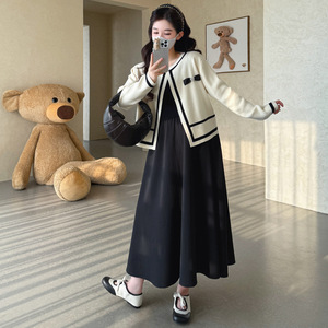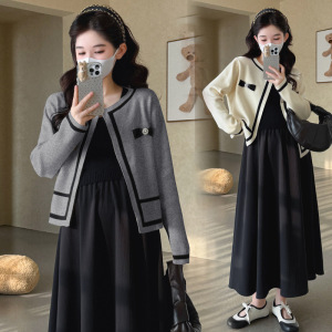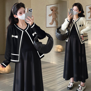 孕妇装2025秋冬新款韩版时尚小香风气质开衫针织+显瘦连衣裙套装