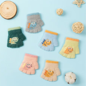 儿童手套0-3岁冬季可爱半指保暖婴幼儿女童婴儿宝宝卡通五指针织