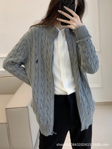 原厂高品质Ralph@拉夫25ss拉链纯色小马刺绣麻花立领针织毛衣外套