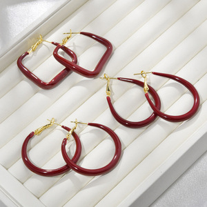 秋冬新款安可拉红大圆圈耳环精致潮流大气轻奢高级感时髦耳圈耳饰
