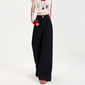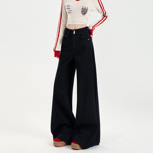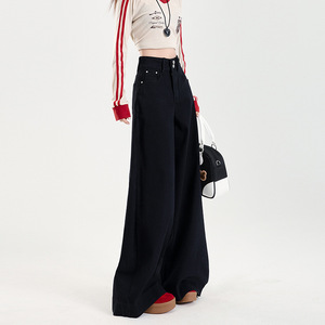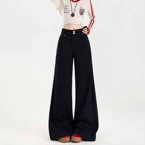 黑色阔腿微喇牛仔裤女秋季2025年新款高腰宽松不贴腿拖地喇叭裤子