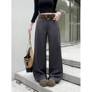 实拍灰色西装裤女2025秋季新款宽松显瘦垂感低腰直筒阔腿休闲长裤