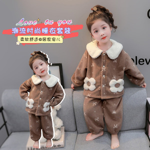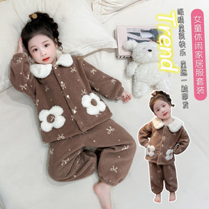 女童睡衣秋冬季法兰绒加厚珊瑚绒2025新款儿童家居服套装宝宝女孩