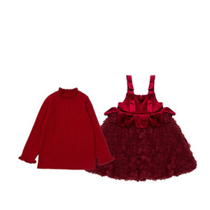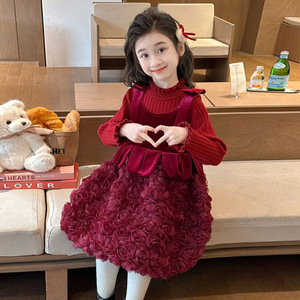 女童连衣裙秋冬款2025新款洋气儿童红色公主裙女孩过年服套装裙子