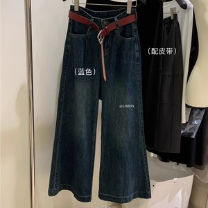 THE LIMON柠檬绿茶2025冬季韩系复古高腰显瘦牛仔裤微喇裤阔腿裤