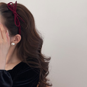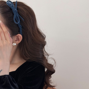 韩系植绒高颅顶复古波浪蝴蝶结发箍气质高级感防滑压发发卡头箍女