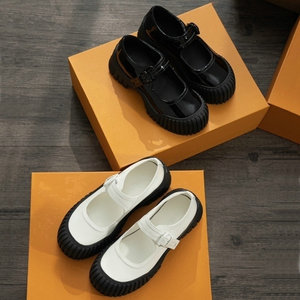 重量级!代购版!驴家高定真皮女单鞋厚底一字带玛丽珍大头饼干鞋