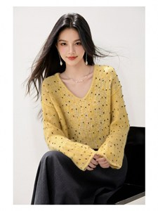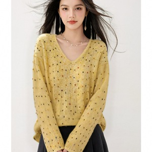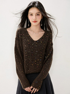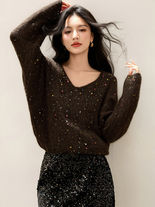 实拍◆2025感v领重工细闪亮片毛衣女洋气时髦百搭宽松针织衫