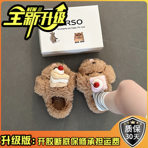 可爱卡通蛋糕小狗毛毛拖鞋女2025秋冬新款外穿防滑棉拖鞋包头拖鞋