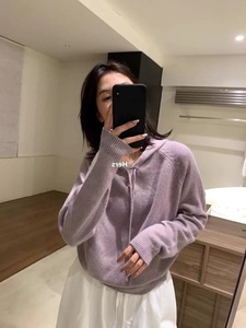 100纯羊毛衫女款抽绳连帽内搭韩系风软糯帽衫打底简约休闲风小衫