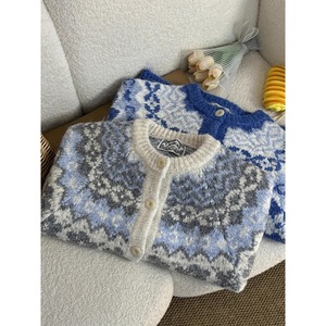 法式软糯慵懒松弛感针织衫高级感针织开衫蓝色毛衣外套女2025秋冬