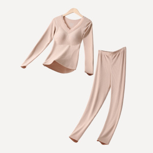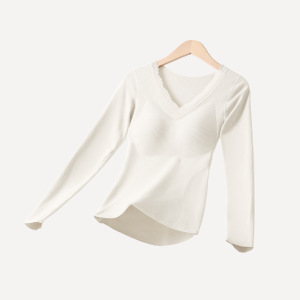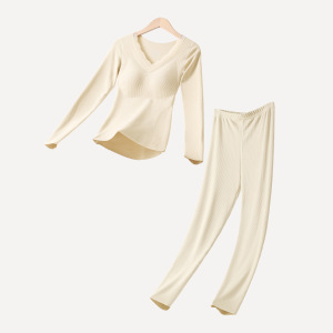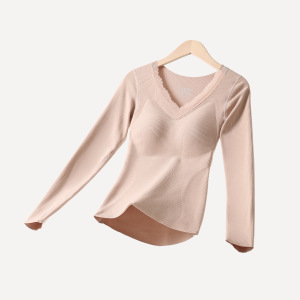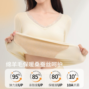 秋冬羊绒桑蚕丝保暖女带胸垫保暖套装高弹显瘦羊绒百搭打底蕾丝