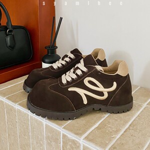 之可~厚底内增高4cm小个子博肯德训鞋女系带时尚休闲鞋大头单鞋
